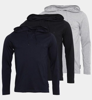 Jack & Jones 3 Pack Hoodys Mens Black Light Grey Marl Navy White